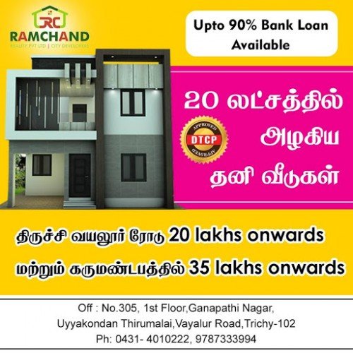 Ramchand city developers in Uyakondan thirumalai,Vayalur road, Trichy is a top player in the category Real Estate Developers in the Trichy. This well-known establishment acts as a one-stop destination servicing customers both local and from other parts of Trichy. Over the course of its journey, this business has established a firm foothold in it’s industry. The belief that customer satisfaction is as important as their products and services, have helped this establishment garner a vast base of customers, which continues to grow by the day. This business employs individuals that are dedicated towards their respective roles and put in a lot of effort to achieve the common vision and larger goals of the company. In the near future, this business aims to expand its line of products and services and cater to a larger client base. In Trichy, this establishment occupies a prominent location in Uyakondan thirumalai. It is an effortless task in commuting to this establishment as there are various modes of transport readily available. It is at Uyakondan thirumalai, Vayalur road, which makes it easy for first-time visitors in locating this establishment. It is known to provide top service in the following categories: Estate Agents, Estate Agents For Residence, Estate Agents For Commercial Rental, Estate Agents For Land, Estate Agents For Plot, Property Consultants, Estate Agents For Agricultural Land.